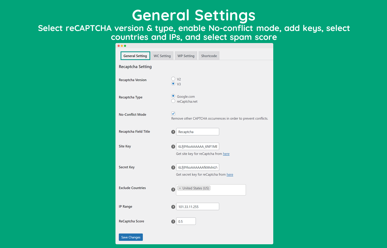 - Exclude specific countries & IP addresses from reCaptcha verification
