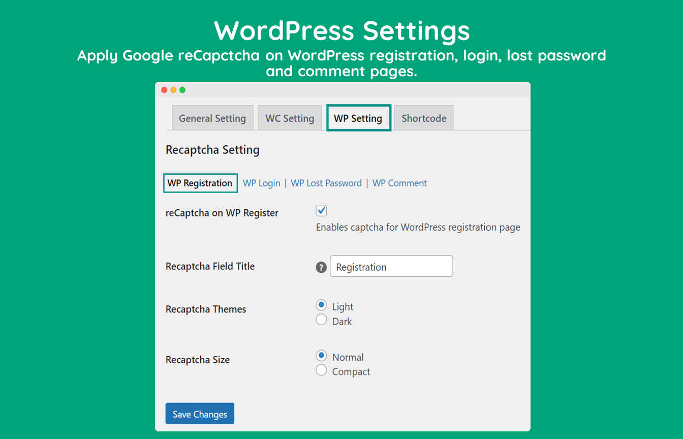 Additionally, reCaptcha can be added to WordPress pages as well. You can choose to apply Recaptcha on the following: