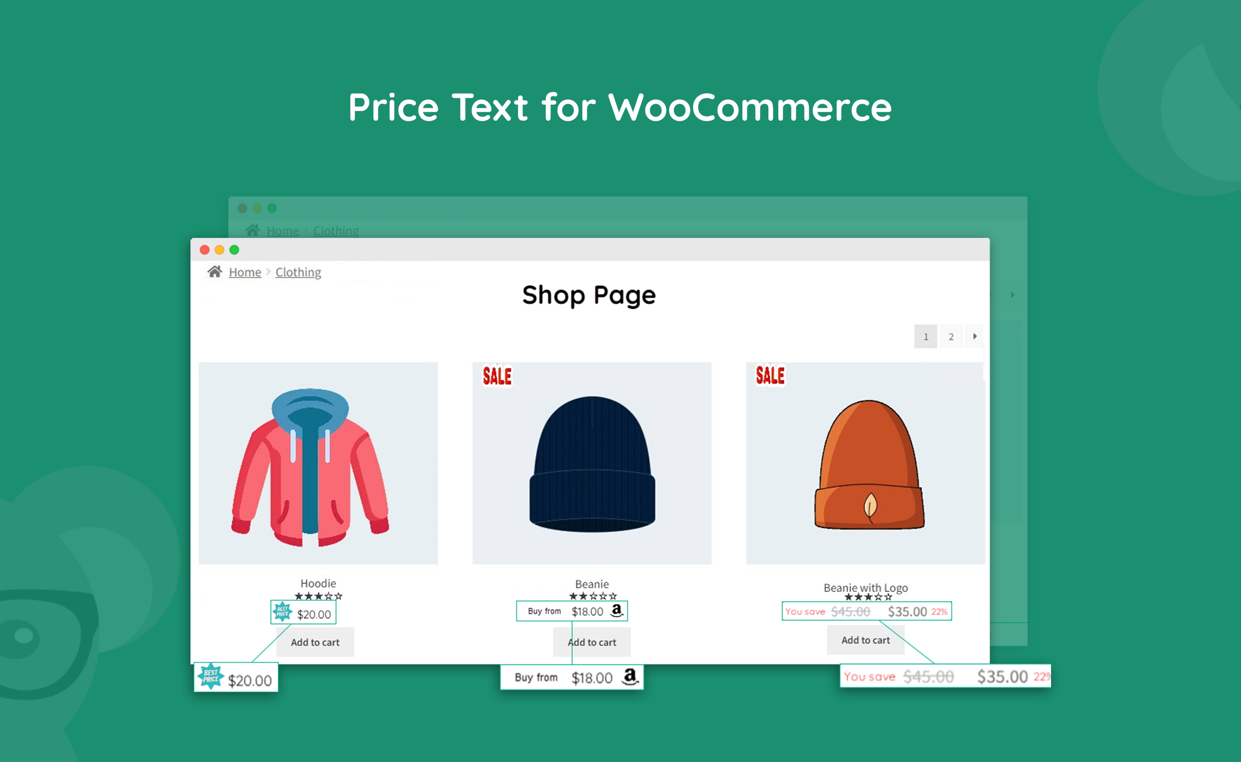 Price text for WooCommerce is a highly customizable extension that allows you to customize fonts and color schemes with a few clicks. You can choose where the text is shown by enabling price text on the listing pages and/or product pages.
