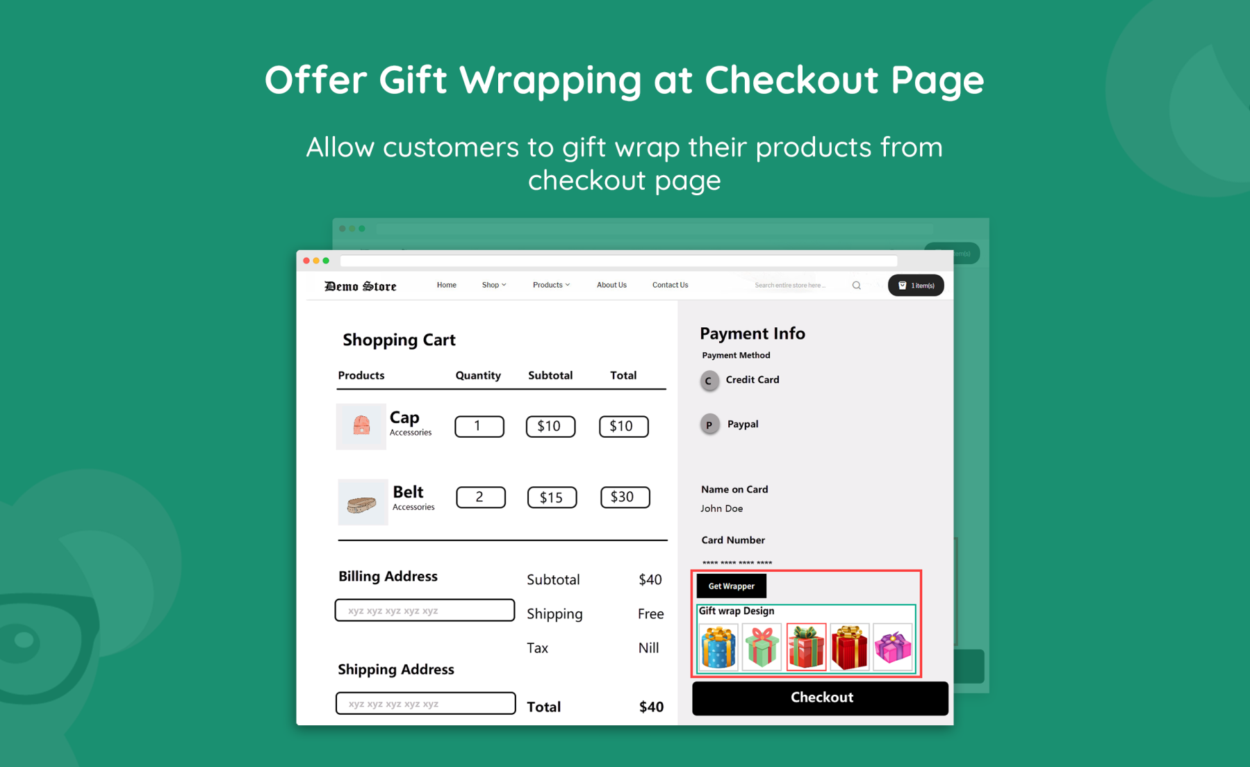 Customize Gift Wrap Style on Product/Cart/Checkout Pages