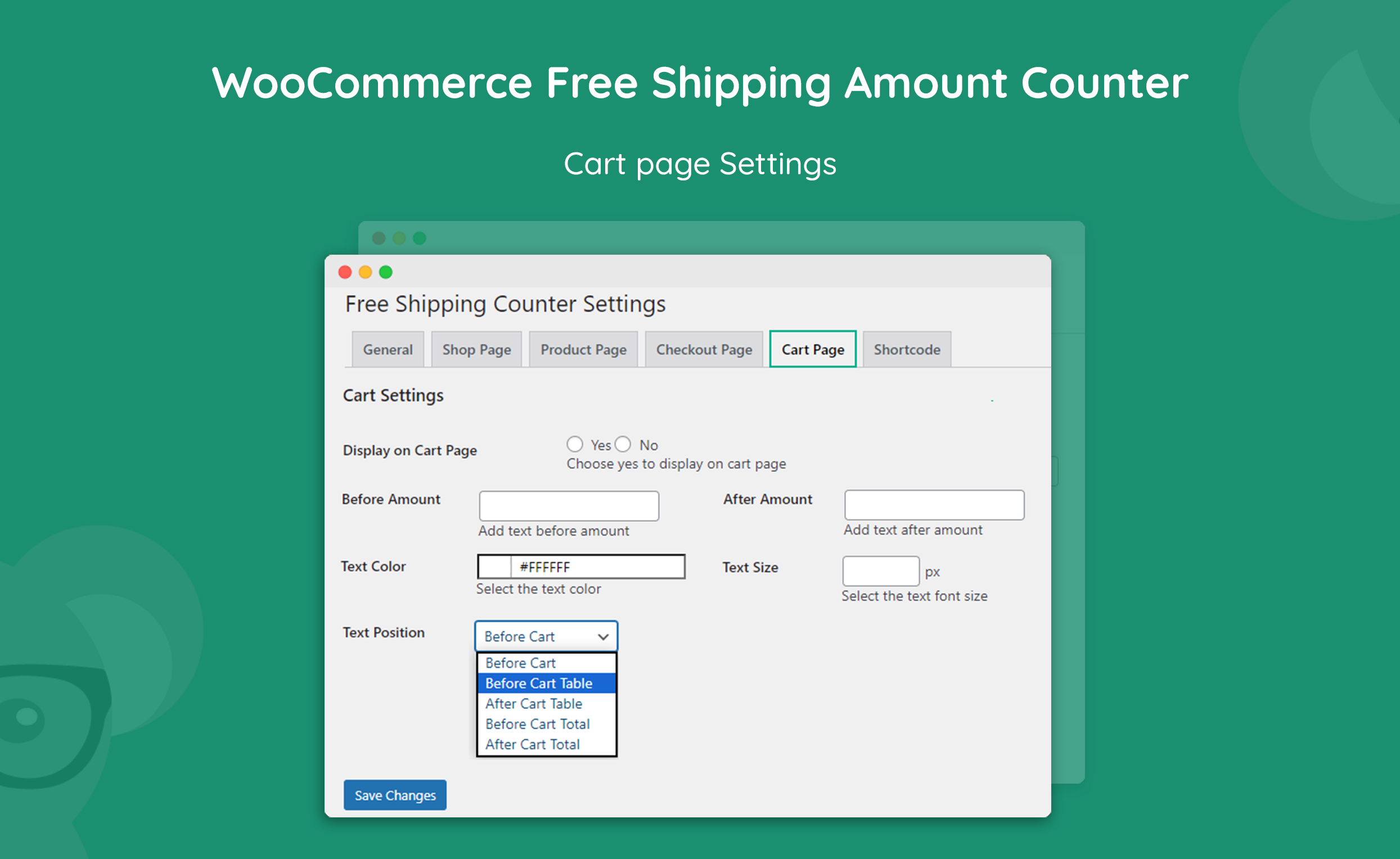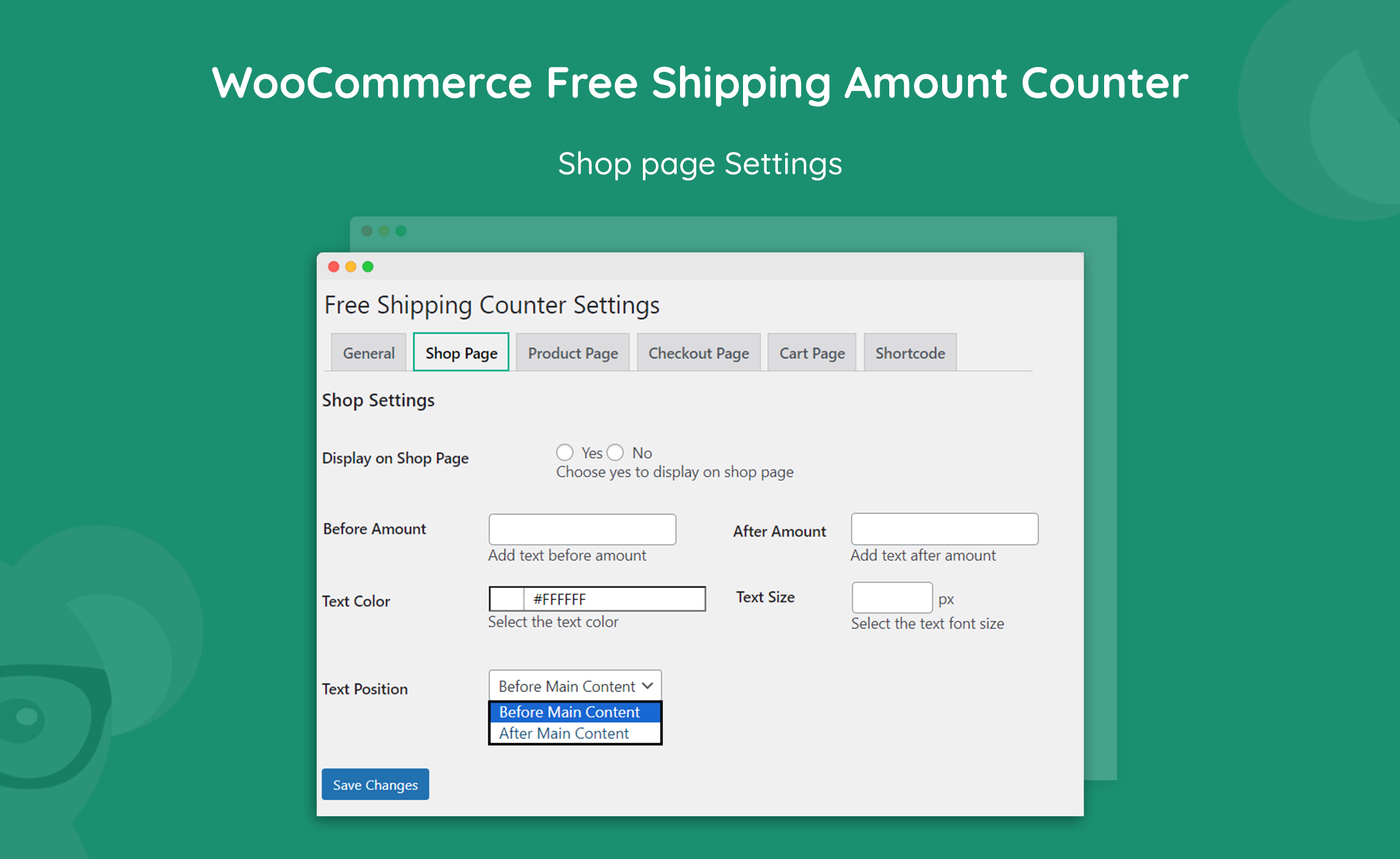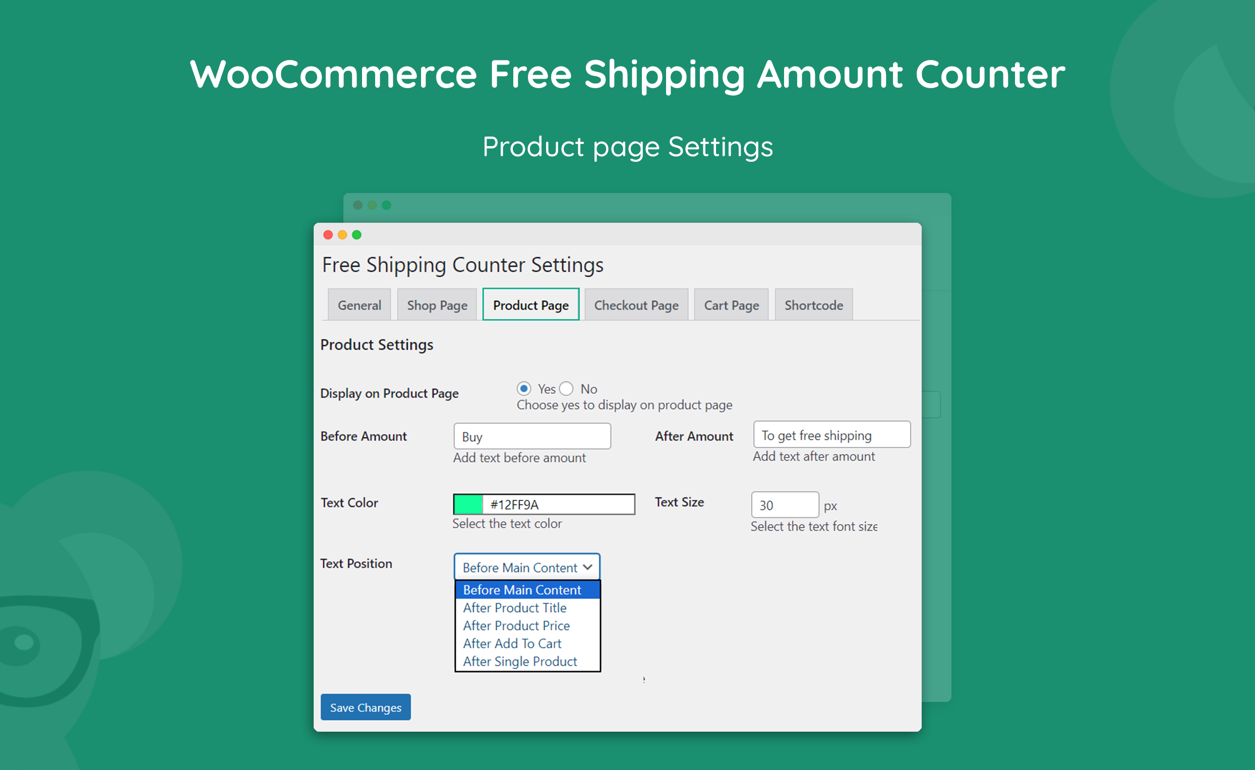 Display the Free Shipping Counter on shop pages. Choose the text position: After or Before the Main Content.